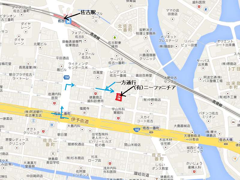 2・二つ目の交差点を東に右折します。(一方通行になっています。)